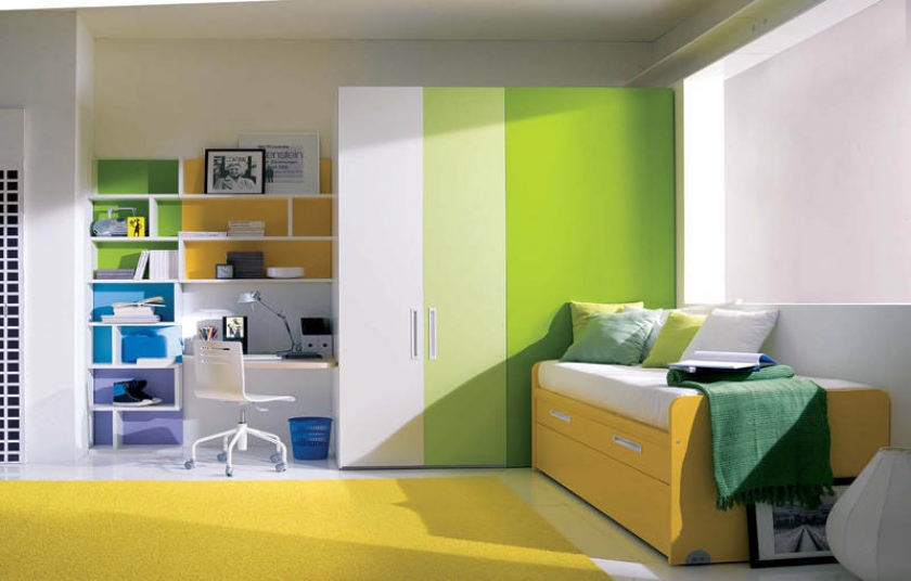 Их не должно быть слишком много, но в качестве дополнения к нейтральной основе этот цвет подойдет идеально. Зеленые оттенки считаются самыми привычными для глаз человека. Они расслабляют психику, настраивая на спокойствие. Это глоток энергии, позволяющий настроиться на работу. Если рабочий уголок будет полностью оформлен этим цветом, школьник не сможет настроиться на работу. Поэтому зеленые оттенки комбинируют со светлыми бежевыми, коричневыми окрасами мебели и аксессуаров. Несколько красных вкраплений позволят оживить такой интерьер. При этом разрешается использовать любые светлые оттенки зеленого. Они могут приближаться к синей или желтой гамме.