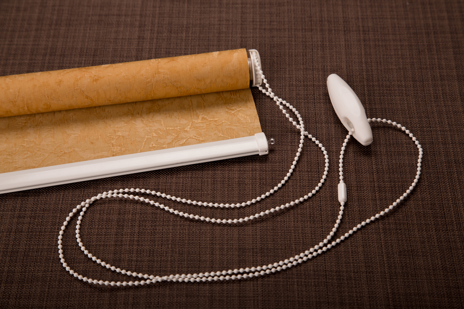 - на цепочку прикрепить ограничители на полное закрытие и открытие рулонной шторы;