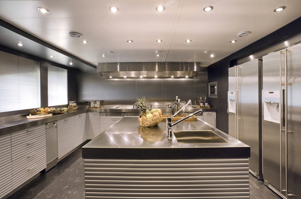 Кухня должна быть буквально напичкана новейшей техникой с блестящей или матовой поверхностью. Современные холодильники с подключением к интернету, техника с электронным дисплеем и сенсорным контролем, встроенная аудио-видео система и все новейшие достижения здесь будут особо актуальны.