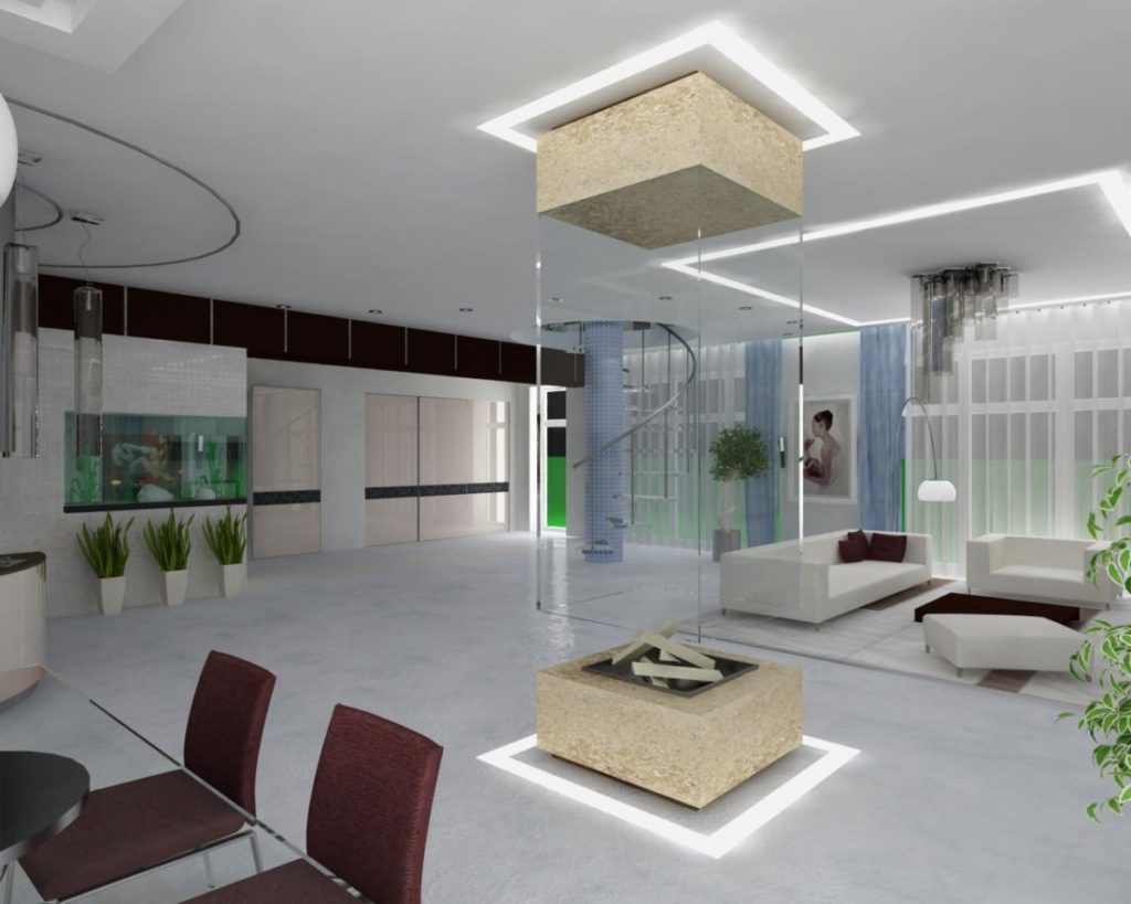Данное интерьерное направление помогает вписать последние научные достижения в художественный замысел проекта. Например, раньше жилища человека украшали настенной живописью и лепниной, а теперь картины заменены на плоские мониторы и экраны.