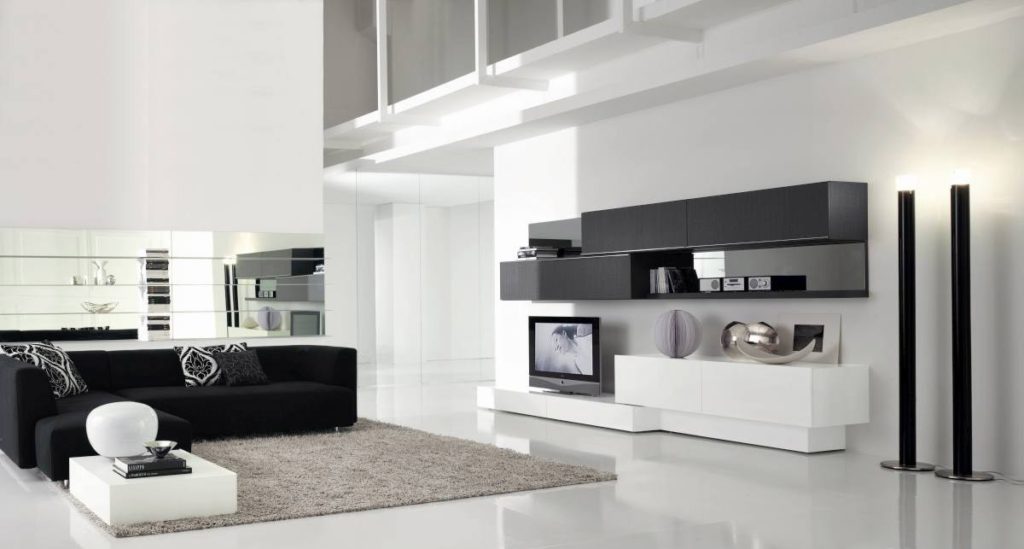 - Хай-тек — мебельный гарнитур отличается функциональностью и правильными геометрическими формами. Должны присутствовать блестящие хромированные поверхности. Основная цветовая гамма — черно-белого тона.