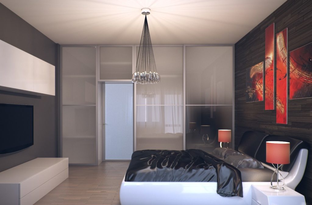 Для спальни стиль хай-тек в чистом виде не очень подойдёт, здесь лучше использовать его элементы. Гостиная оформляется также без излишеств: настенные и напольные светильники, сюрреалистические панно и картины на стенах, несколько декоративных растений, возможны статуэтки из стекла или металла, телевизионная панель с большим экраном. На полу – однотонный, неяркий ковёр с большим ворсом. Различные трубчатые коммуникации ничем не прикрываются.