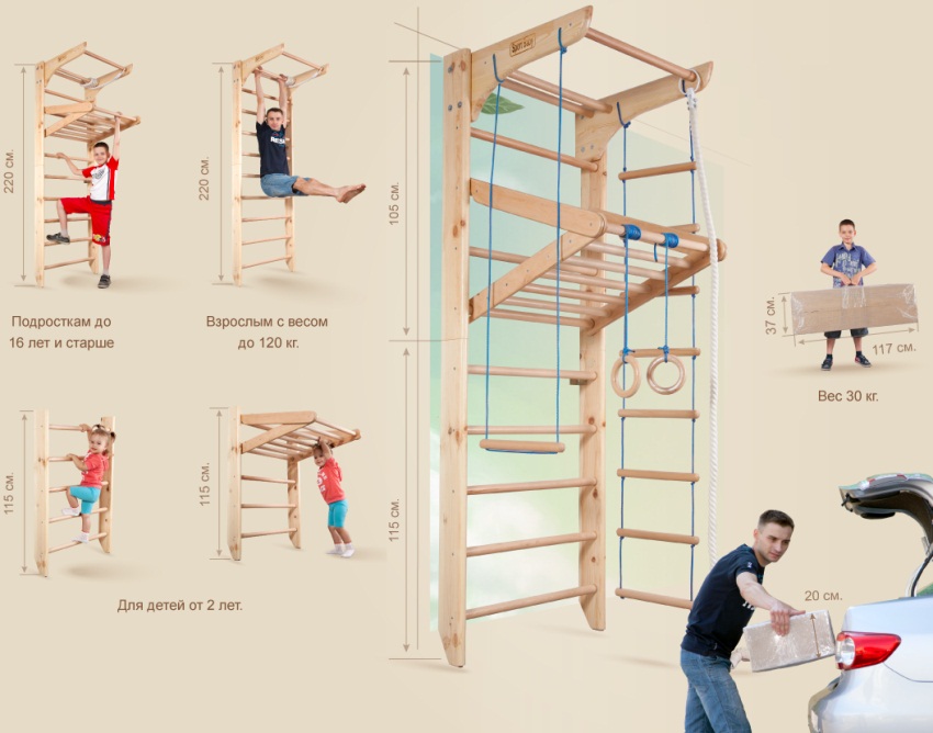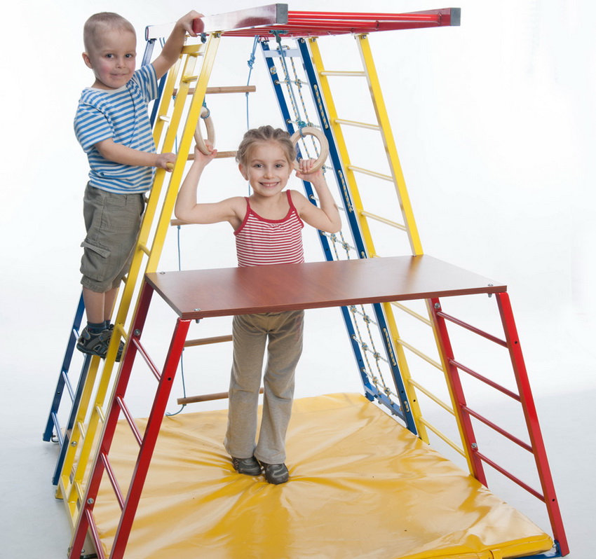 - ребенку 3…7 лет можно приобрести усложненный вариант, дополненный кольцами, канатом или веревочной лестницей;