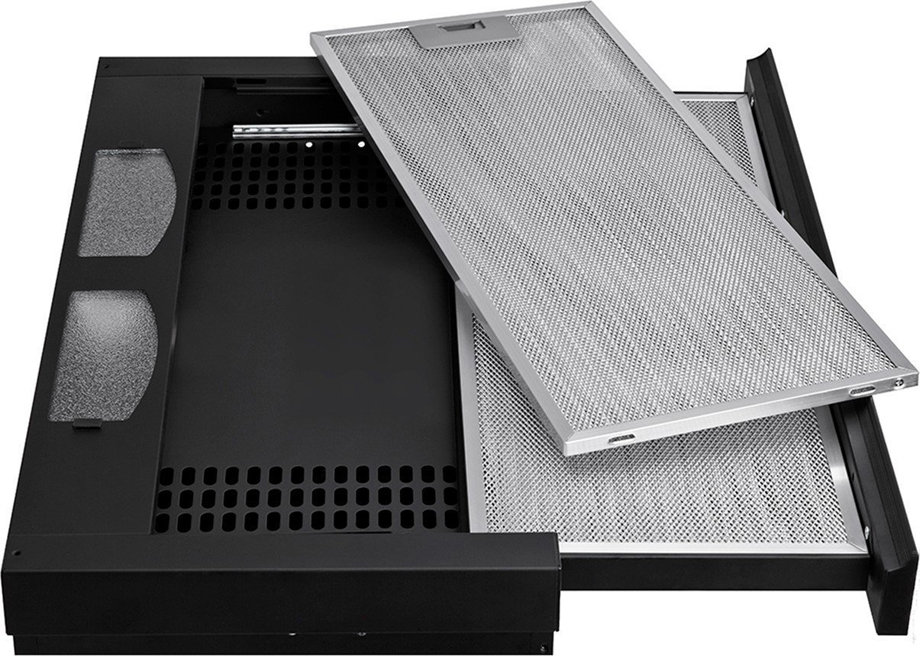 - Комплект фильтров. Простейшие модели могут вовсе не комплектоваться фильтрами, в итоге жир и пыль оседают на рабочих механизмах, приводя их в негодность. Фильтры грубой очистки (металлические сетки) защищают мотор от частиц жира. Также используются сетчатые и угольные фильтры – они хорошо нейтрализуют запахи, но нужно вовремя их менять. В дорогих моделях есть индикаторы, которые сигнализируют о необходимости очистки или замены фильтра.
