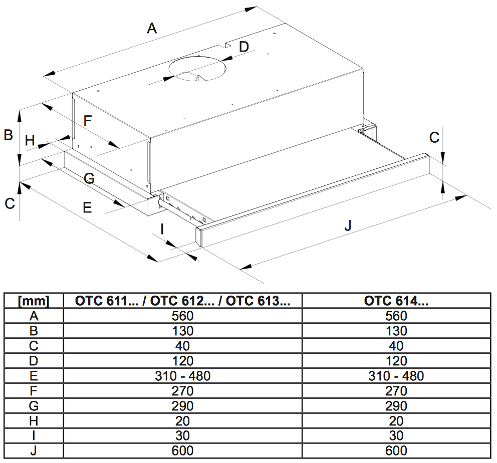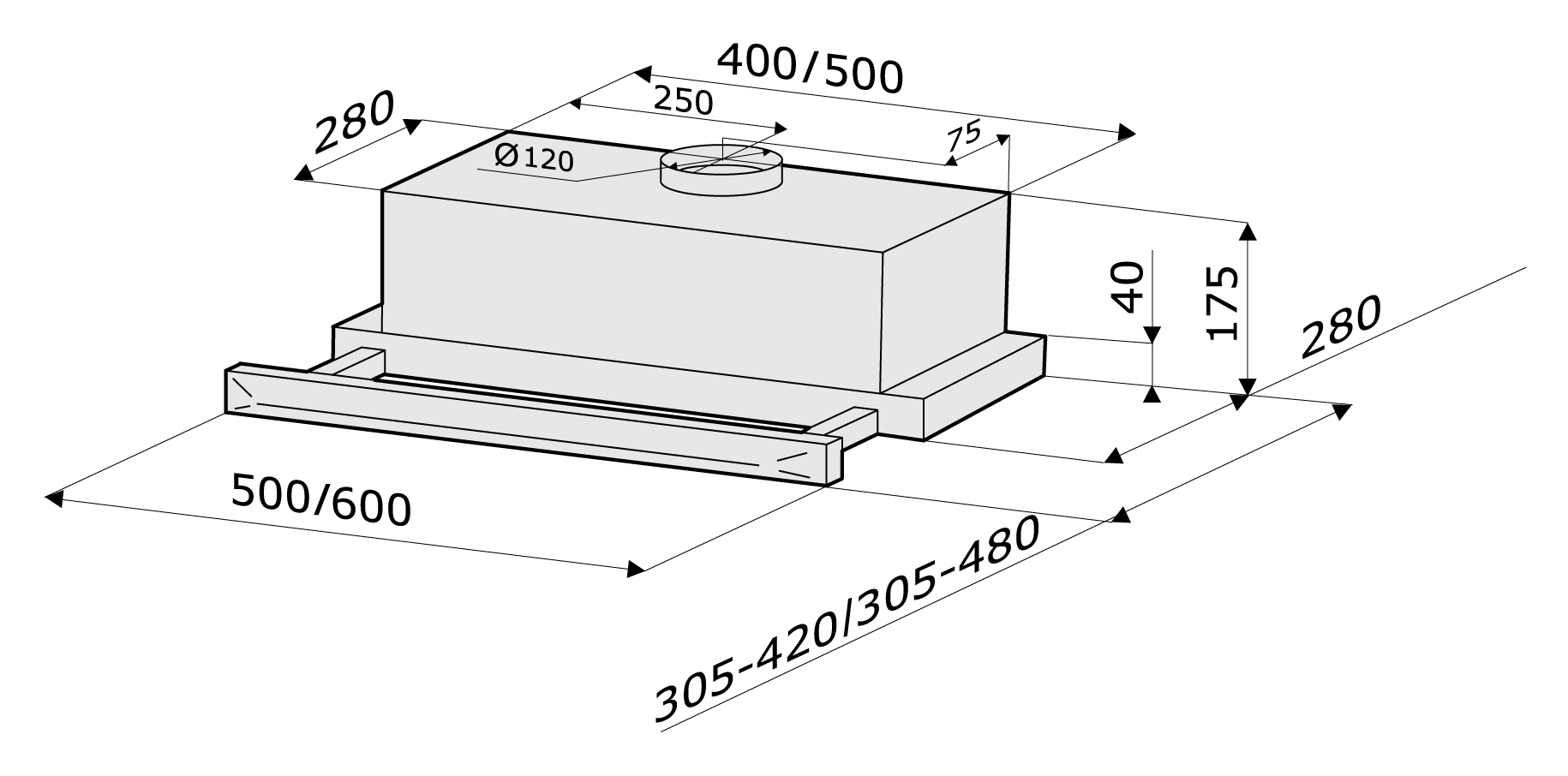 Размеры кухонных вытяжек