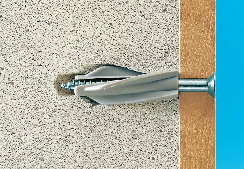 Обычно такие изделия используют в работе с полистиролбетоновыми блоками. Гильза чем-то напоминает распорную, но выполнена в виде спирали. Дюбель способен выдерживать серьезные нагрузки, поэтому его можно использовать для крепления вытяжек, подвесных шкафов, разного типа полок и бытовых предметов с большим весом, техники.