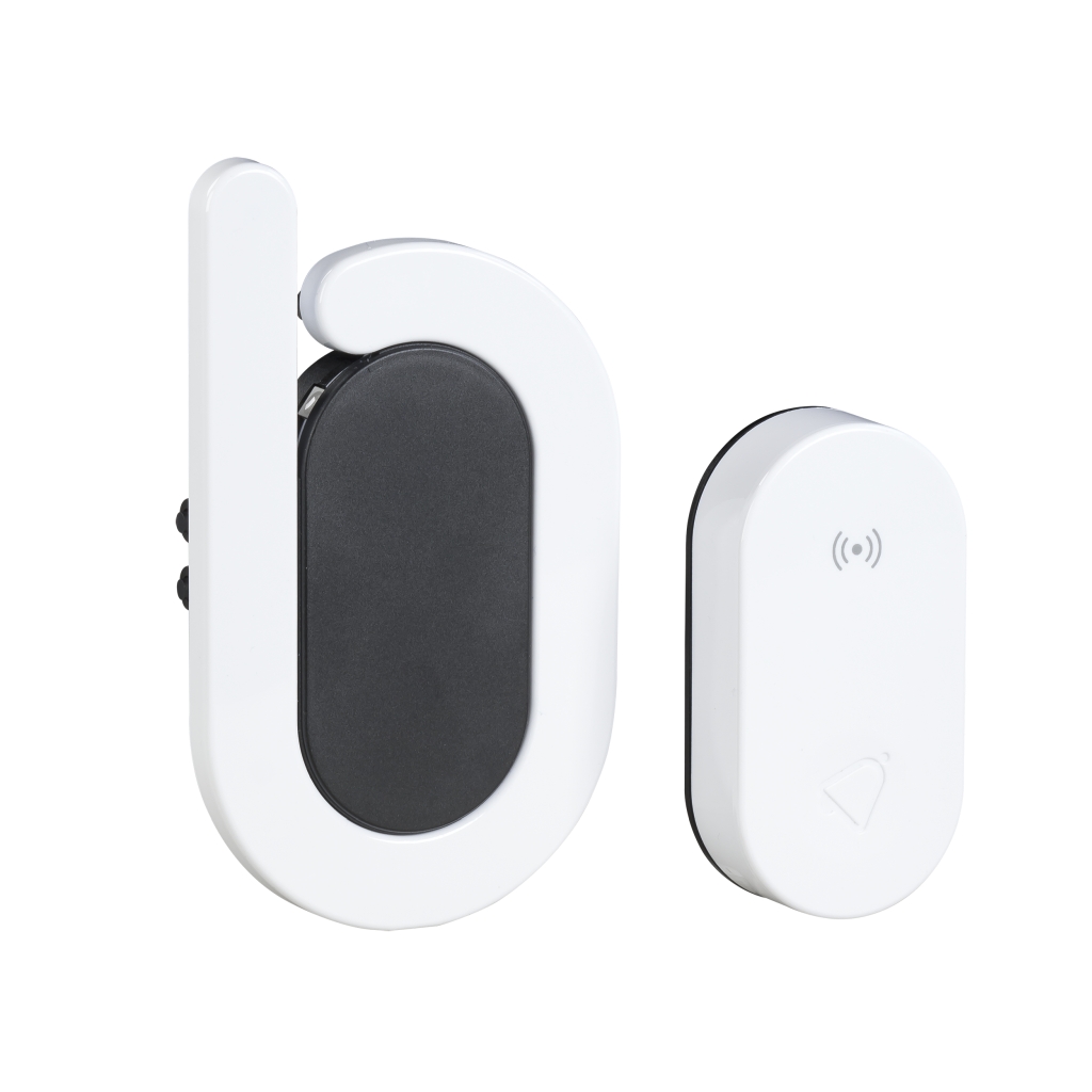 Гибрид имеет лаконичный дизайн. Корпус кнопки и основного блока изготовлены из прочного пластика, устойчивого к пожелтению. Радиус действия устройства составляет 1,5 м. На клавише имеется световой индикатор, что облегчает ее поиск в темноте. Уровень громкости – 70 дБ, выбрать можно одну из 20 возможных мелодий.