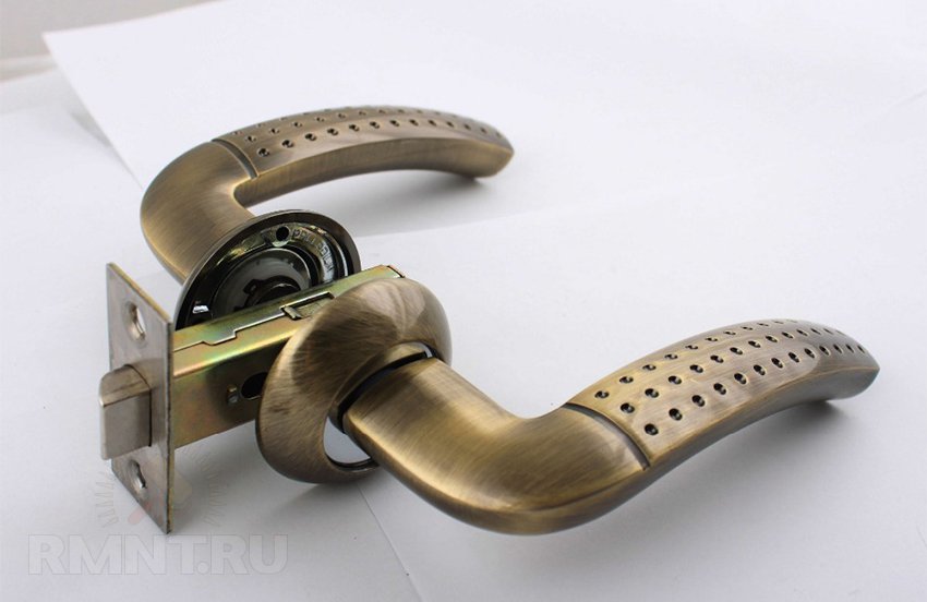 Раздельная нажимная ручка наиболее универсальна, она крепится к дверному полотну с помощью розетки. Возможна установка в паре с простой защёлкой или же с защёлкой, дополненной фиксатором-поворотником. Выбор способа монтажа — за вами, предлагается на выбор возможность крепления стяжками или саморезами (поставляются в комплекте). Исходите из особенностей материала дверного полотна: если предстоит установка ручек на двери из массива дерева, можно обойтись саморезами, для дверей из МДФ надёжней использовать стяжки.