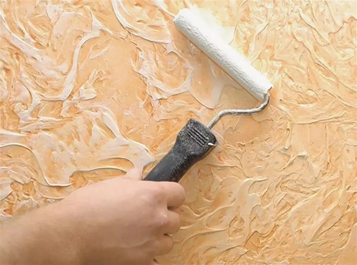 Если используется жесткий валик для декоративной штукатурки, то процесс происходит так: