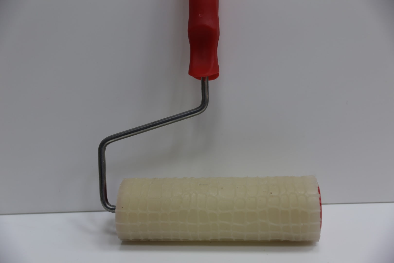 Полимерный валик Жёсткие контактные поверхности «склонны» к оставлению недостаточно чётких отпечатков. Жёсткие выступы при извлечении из раствора во время прокатывания тянут края смеси за собой. Кроме того, растворы могут налипать на пластик, так что инструмент требуется регулярно очищать.