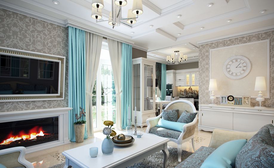 Скандинавия. Скандинавский стиль – по-прежнему самый актуальный интерьер для гостиной. Сочетание белого цвета с синим или серым смотрится очень стильно, изысканно и гармонично. Мебель в таком интерьере должна быть минималистичной, с легким налетом старины. Некоторые дизайнеры для создания интерьеров в скандинавском стиле используют вещи, мебель и элементы, заимствованные из меблировки 60-х годов прошлого века.