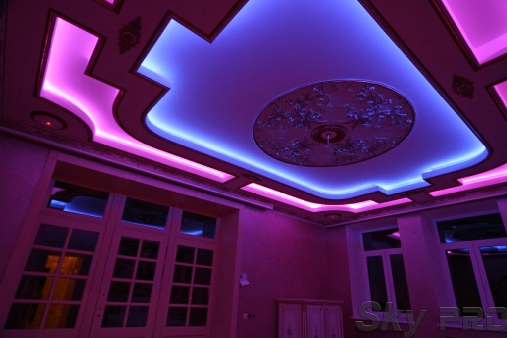 Самым популярным местом для монтажа led ленты является подвесной потолок (в особенности из гипсокартона). Изделие крепят такими методами: