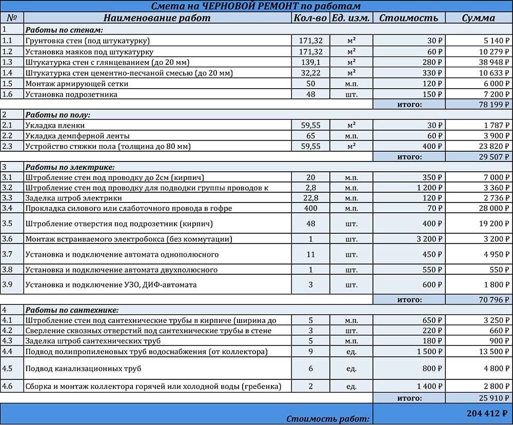 Пример сметы на оплату работ отделочников ФОТО: ks196.ru