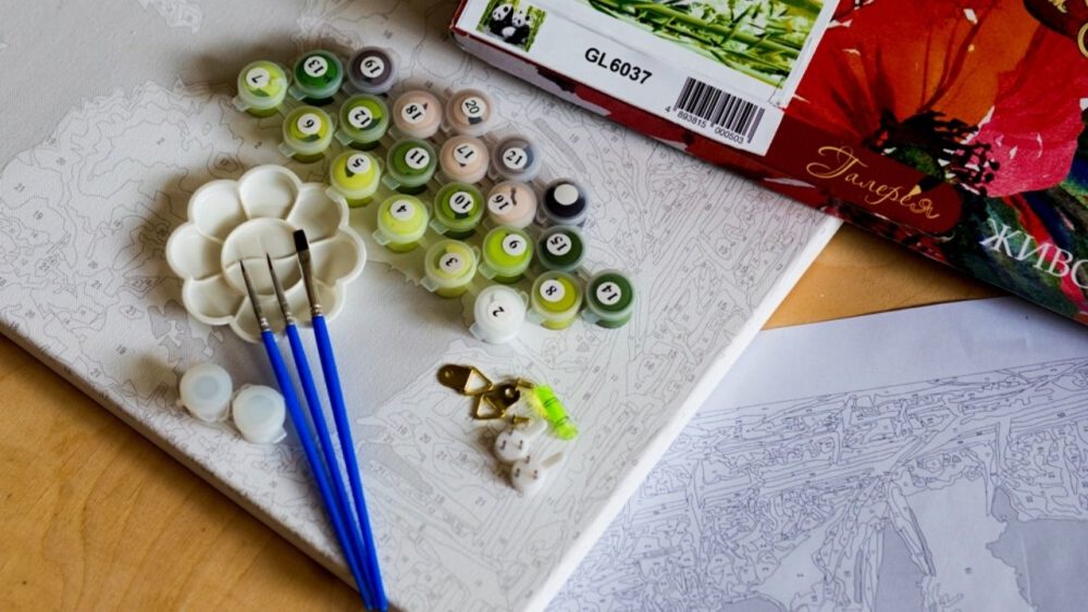 Секрет творчества кроется в том, что площадь холста содержит пронумерованные участки, на раскраску каждого из которых имеется баночка краски с соответствующим номером. Живопись по номерам с акриловыми красками производится в следующей последовательности: