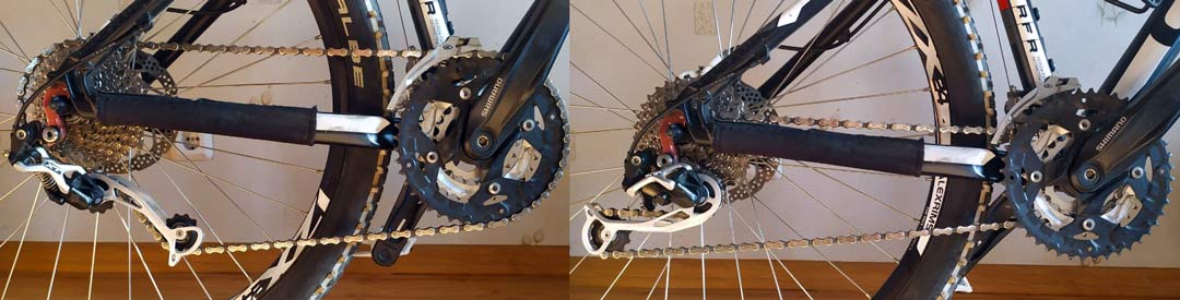 После установки цепи нужно убедиться, что длина цепи была выбрана правильно. Для этого поставьте цепь на самые большие звёзды (должен быть небольшой запас в длине) и самые маленькие (не должно быть провисания):