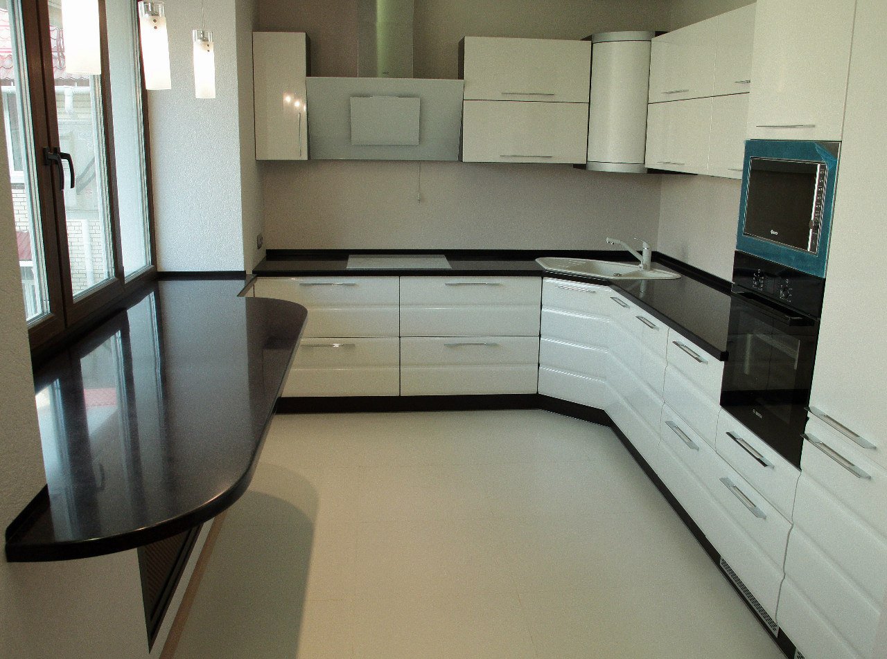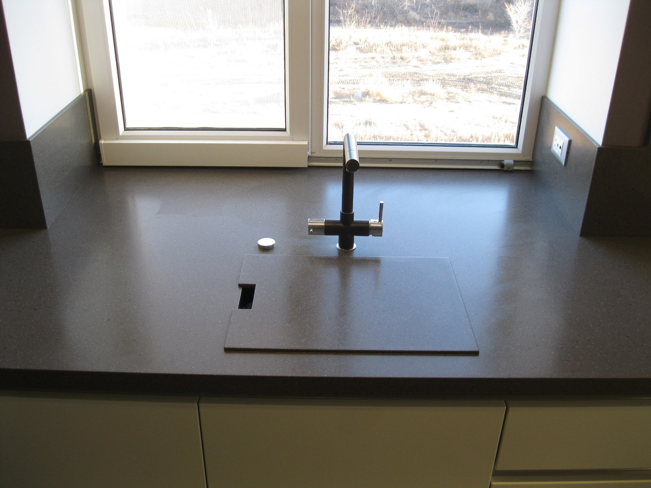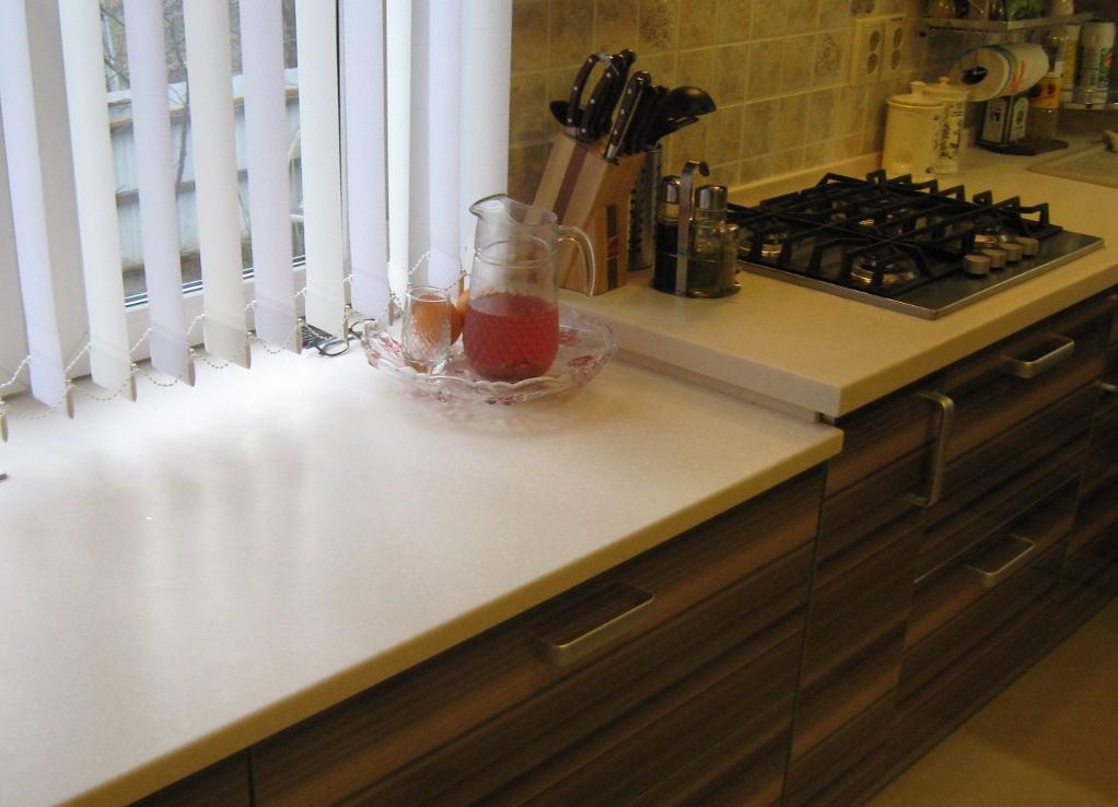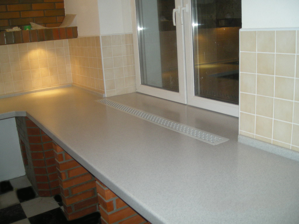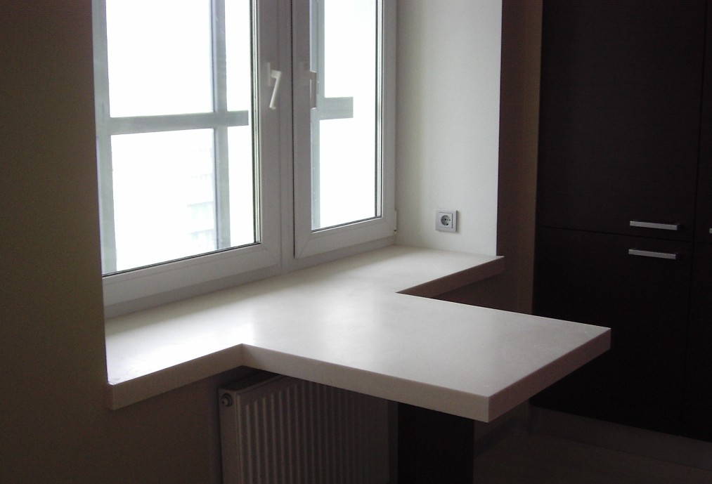 Проще всего установить прямой подоконник столешницу из искусственного камня