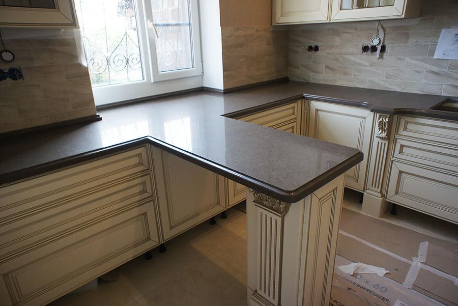 Ведущие производители Corian, Gibraltar, Formica Solid Surfacing и Staron. Такие поверхности представлены в разнообразной цветовой гамме, рисунок у них едва заметен, поэтому они особенно подходят для любого стиля.Достоинства:• Прочность, стойкость к воде, бактериям и пятнам.• Благодаря имитации реалистичных узоров может конкурировать с натуральными камнями. • Монолитность. • Возможность минимальные повреждения замаскировать шлифовкой. • Возможны модели с встроенными раковинами и фартуком. • Сочетаемость с другими элементами декора, независимо от цвета и освещения.Недостатки: • Повреждения на поверхностях темных цветов видно отчётливее. • Подвержен повреждениям от высоких температур, может треснуть при ударе.