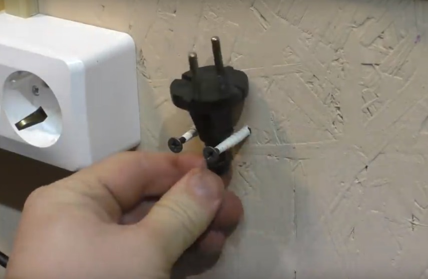 Ненужную для работы электрическую вилку можно подвешивать между саморезами.