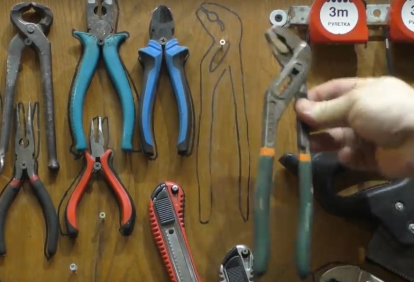 Ценность такого самодельного стенда повысится, если на каждом месте подвески нарисовать контур того инструмента, который должен здесь находиться. Это позволит мастеру без труда возвращать инструмент на отведенное для него место.