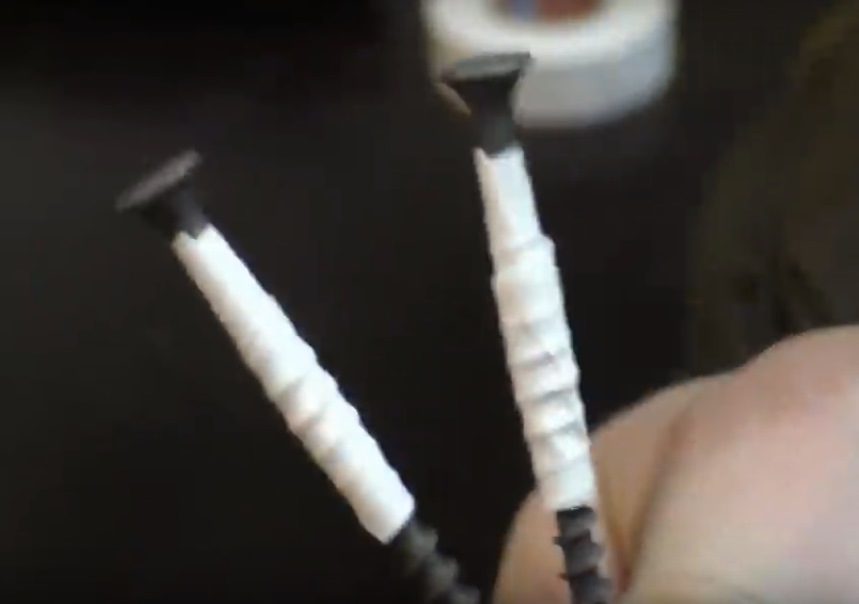 Порой приходится закручивать шурупы в труднодоступных углах. Трудно зафиксировать крепление – рука не пролазит в труднодоступное место, а сам шуруп отпадает с отвертки. Попробуйте зафиксировать его на отвертке при помощи клея . Лучше всего выбирать резиновый клеящий материал, он крепко держит деталь и его легко очистить.