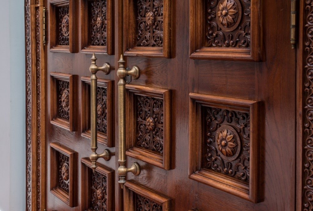 Важно вбырать фурнитуру так, чтобы она гармонировала с дверью по цвету и качеству. Чаще всего для ее изготовления применяют латунь