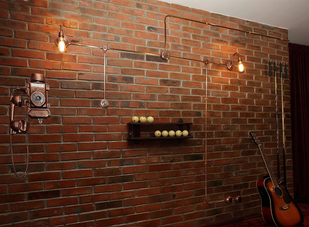 Часть помещения с кирпичными стенами и дизайном под старину