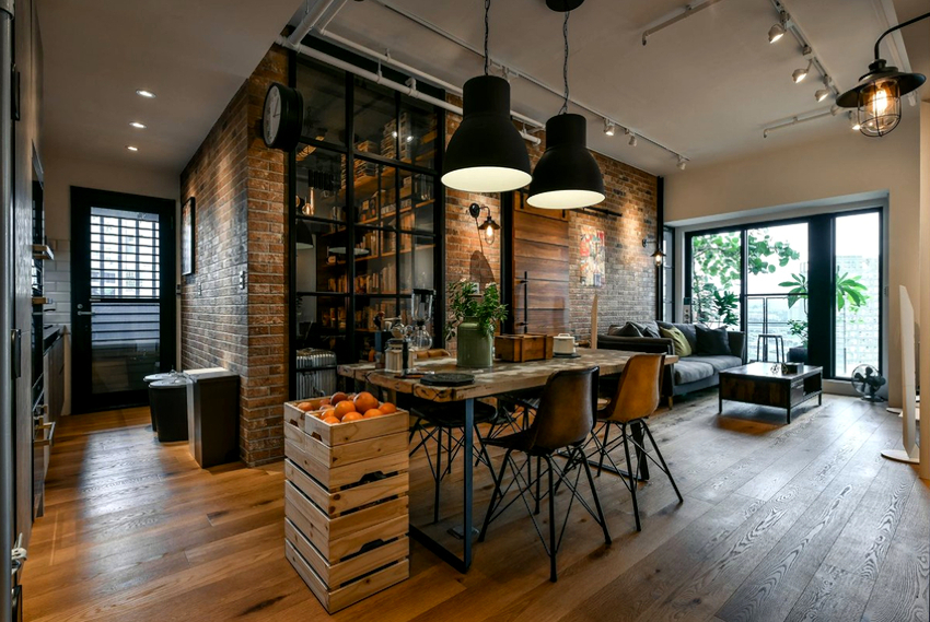 Зону с таким названием чаще всего организуют при перемещении кухни в нежилое помещение, например, в коридор. При этом ненесущую перегородку смежной жилой комнаты убирают, чтобы появилось больше пространства под обеденную зону. Так жилая комната переходит в разряд нежилых.