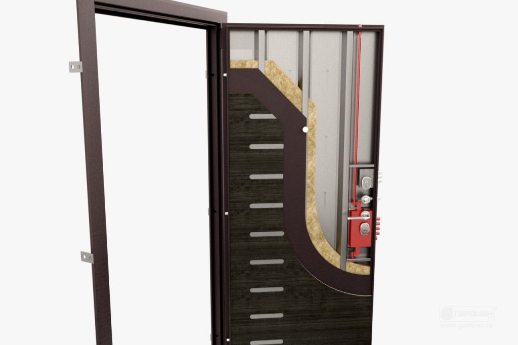 Теплоизоляционный материал вставляется между каркасом и ребрами жесткости, заполняя все пространство между внешним и внутренним листом. Чаще всего при производстве стальных дверей используют такие утеплители: