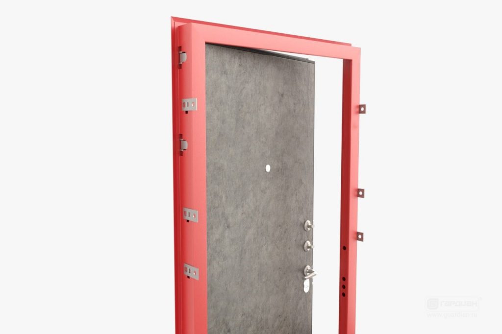 - Дверная коробка – стальная рама О-образной формы сложного сечения, для обеспечения надёжного и плотного примыкания полотна в притворах.